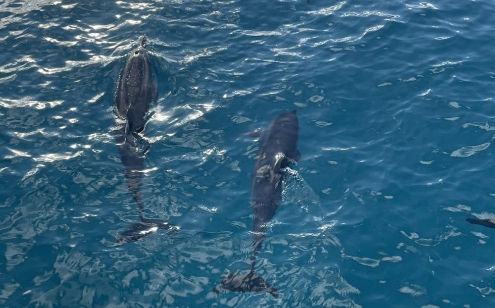 運よく30匹前後の群れに出会うことができ、船の周りを泳いでいるのを見ることができました。