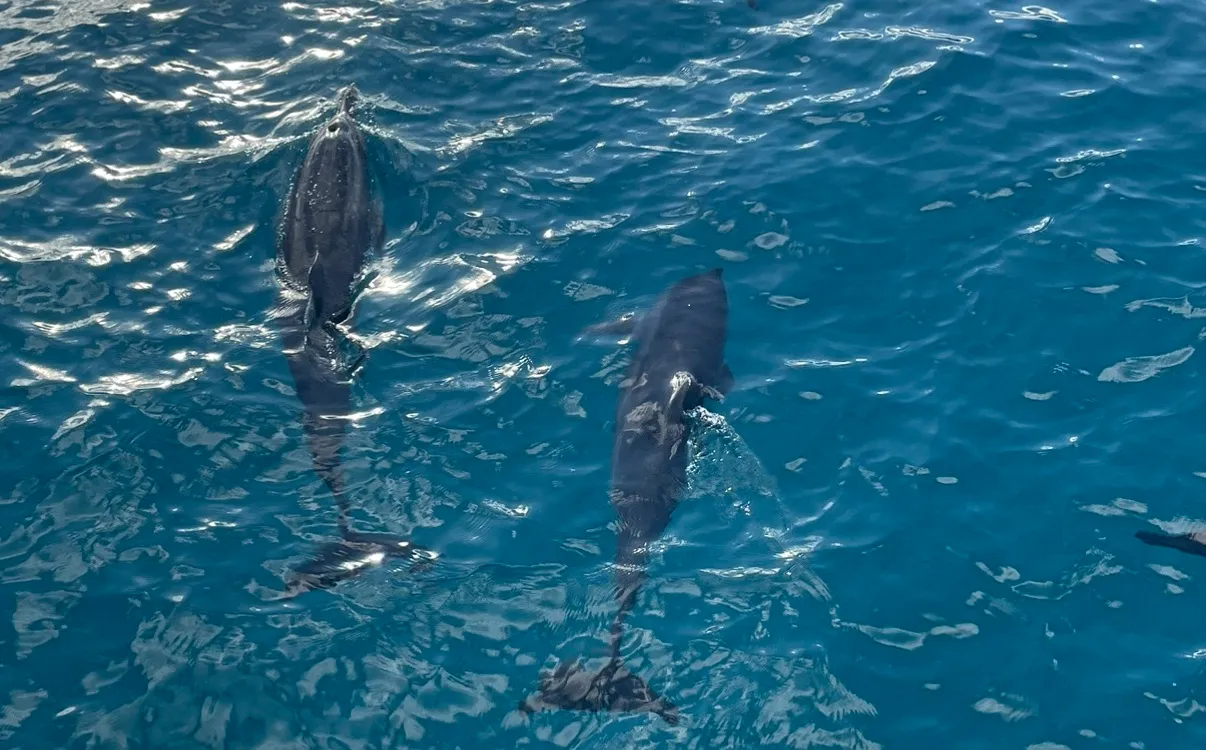 運よく30匹前後の群れに出会うことができ、船の周りを泳いでいるのを見ることができました。