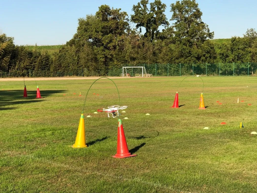 この輪っかを慎重にくぐって離陸した場所へまた戻ってくるというゲームで、タイムが一番早かったチームの勝ちです。