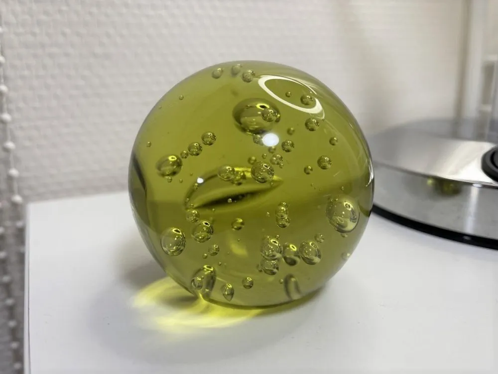 新島ガラスは透明感のあるオリーブグリーン色をしていて、コーガ石を原料に製作されています。