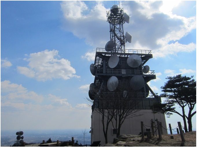その山の頂上に国土交通省の中継所があり、そこの鉄塔上にアンテナを設置し、機械室に業務用無線の基地局を設置しました。