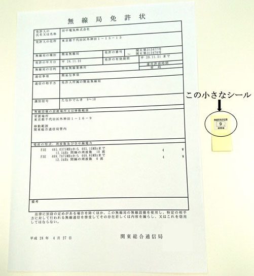 これは「免許証票」といって、「この無線機は免許を取得しています」という事を示すだけではなく、「免許の有効期間が平成何年までか」を表しているんです。