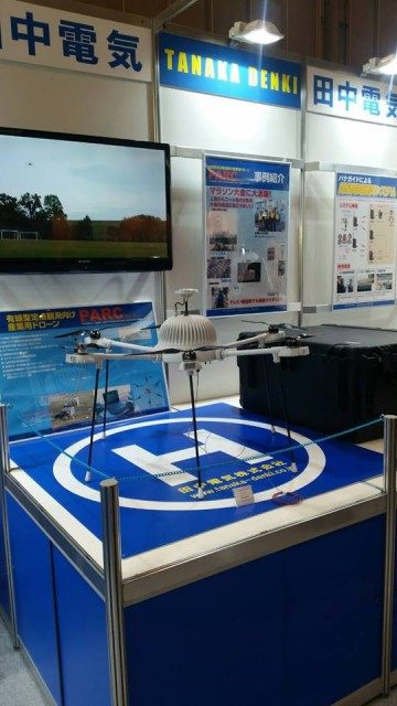ブース中央に産業用ドローンを設置