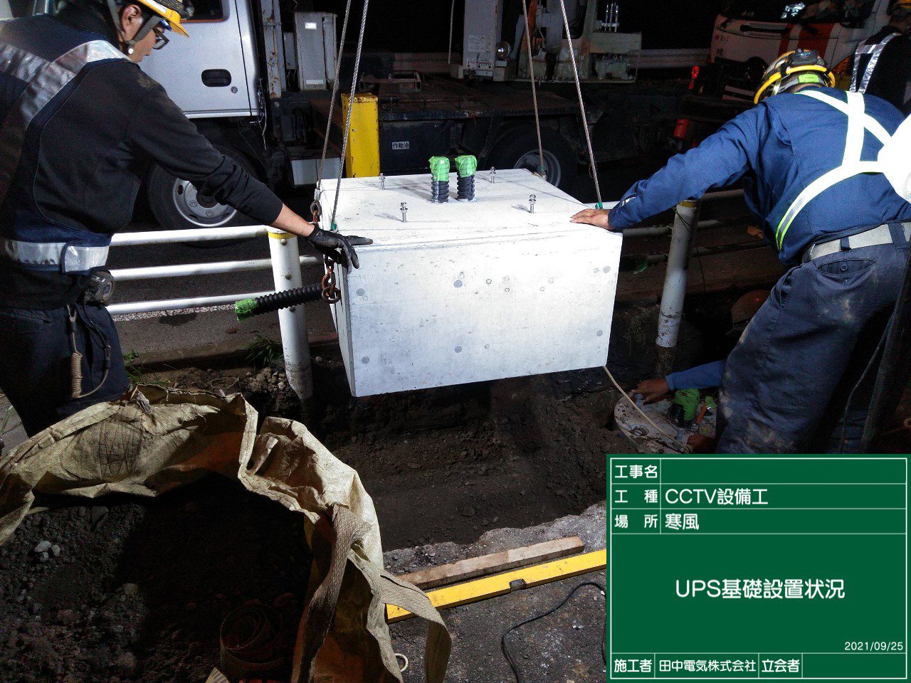 また非常時の場合に備えて、電源が供給されない状況を想定して、無停電電源装置の設置もカメラ支柱の隣に設置しております。