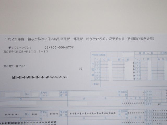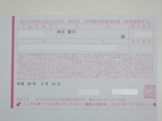 写真は各区市町村から送られてきた住民税の決定通知書。