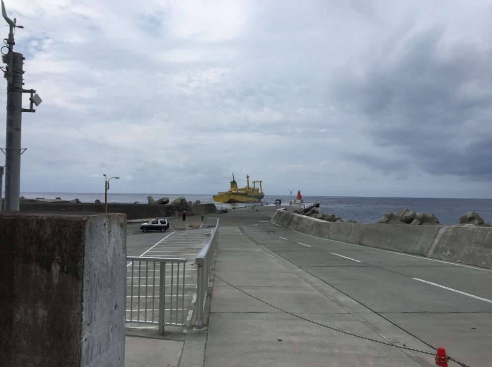 着岸作業中に桟橋を超える波が来ると人も車両も海に飲み込まれてしまうそうで、十数年前にはトラック2台が海に引きずりこまれる事故も起きたそうです。