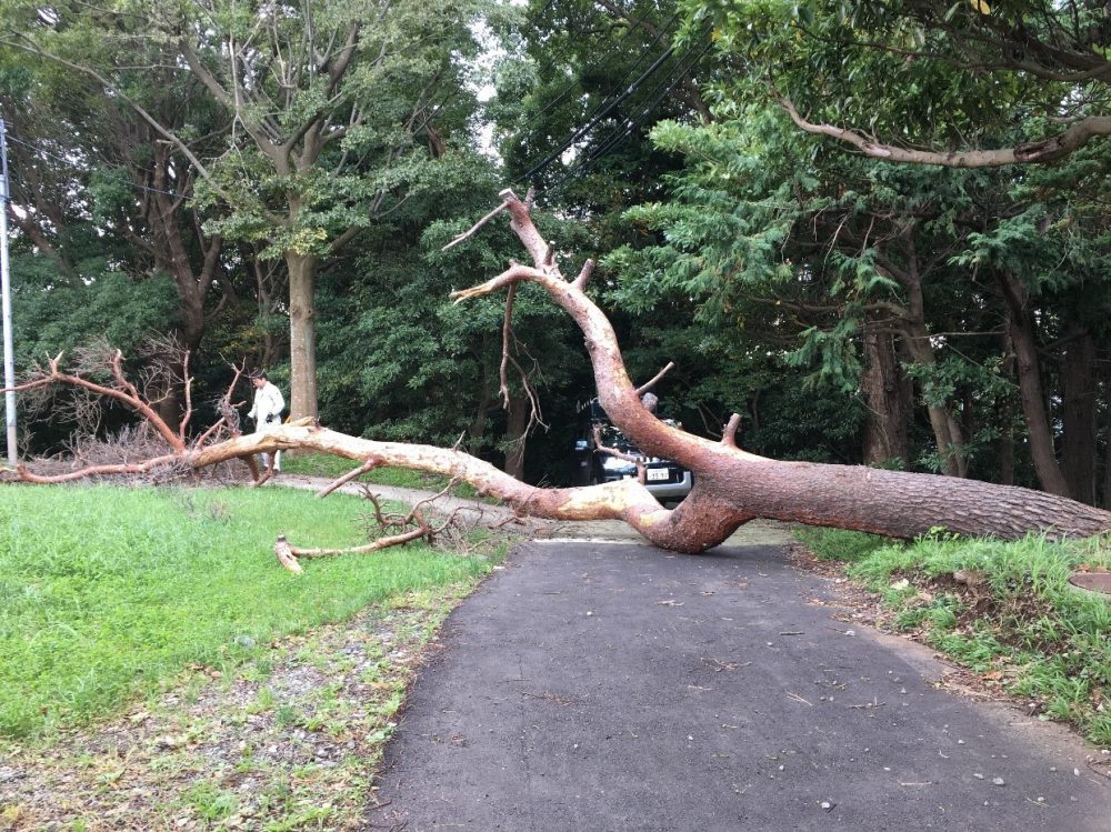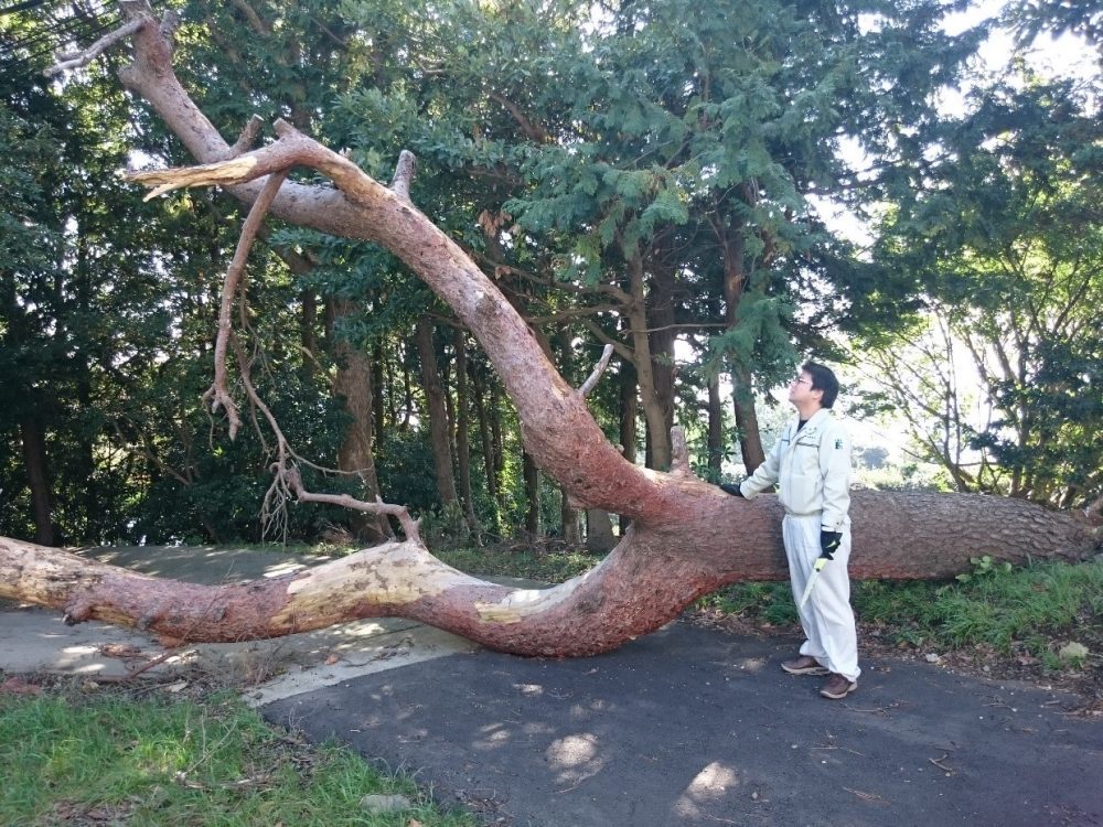 松の木は枯れていたため、台風の風で倒れてしまったようです。