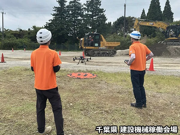 弊社が運営する秋葉原ドローンスクールから、安全運転管理者、操縦および撮影担当、カメラワーク担当として3人が千葉の建設機械稼働会場「平川フィールド」で行われた大会の様子をドローンで撮影し、その映像を六本木の遠隔操作会場へリアルタイムで伝送しました。