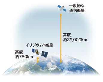 イリジウム®衛星は上空約780kmの低軌道を周回するため、他の通信衛星と比べて音声遅延の少ないリアルタイムな通信を実現します。