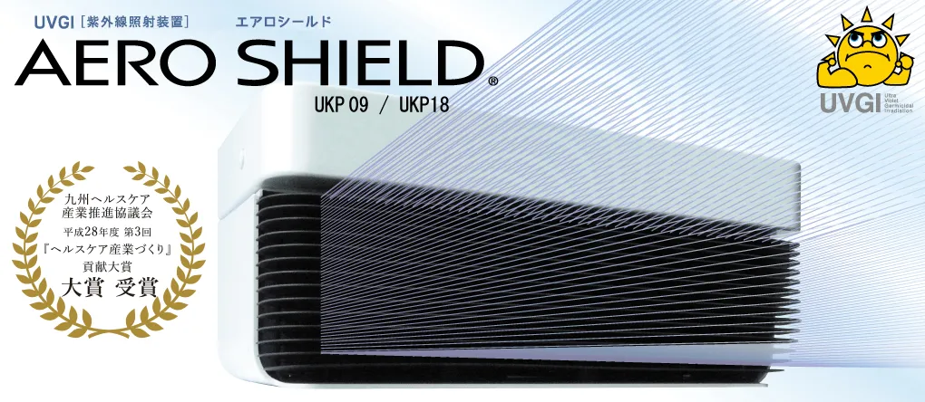 「エアロシールド」は高い浮遊菌・ウイルス減少効果を持つ「UV-C」ランプを使用しております。