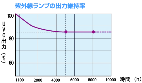 長寿命高性能紫外線ランプを使用しており、24時間連続使用した場合でも、約7ヶ月に一度のランプ交換を除いて日常の保守点検などは不要です。
