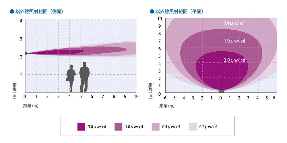 メーカー独自技術による安全な紫外線(UV-C)ゾーンの形成