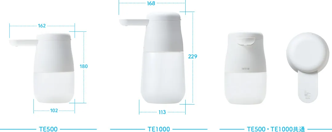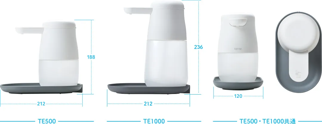 | 質量 | 【TE500】約330g(トレー、消毒液、乾電池を除く) 【TE1000】約350g(トレー、消毒液、乾電池を除く) |
