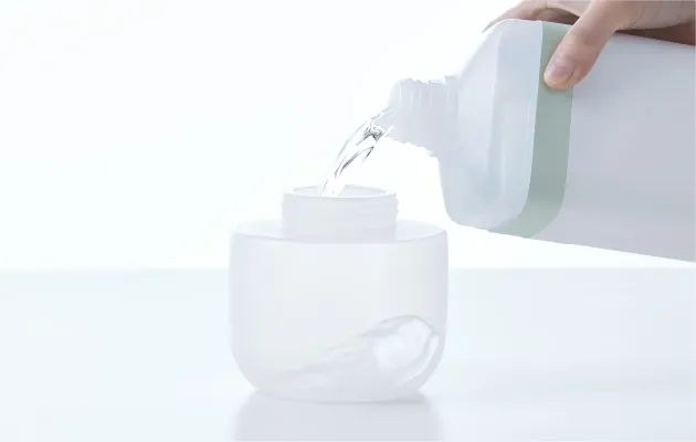 残量が見やすい透明ボトル。 消毒液の補充やお手入れが簡単にできます。