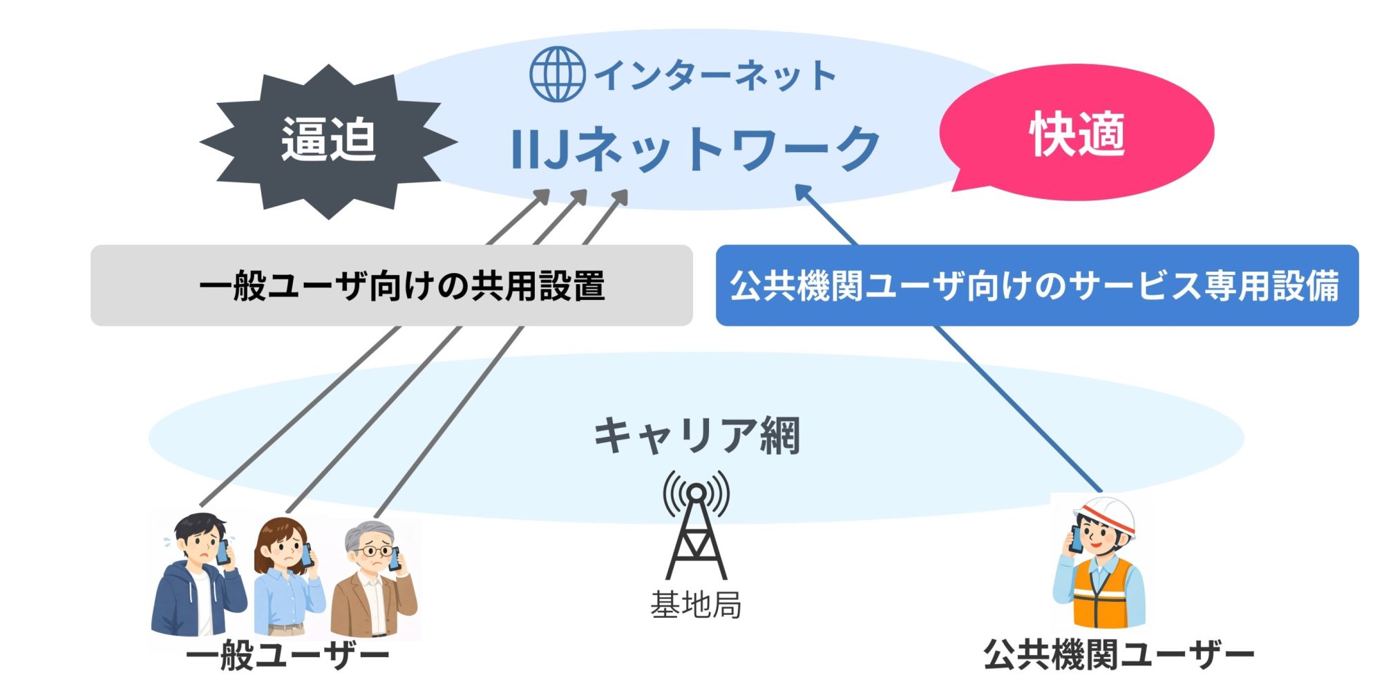 公共機関向けに独自の回線設備を用いて構築された、災害・緊急時に強い通信サービスです。