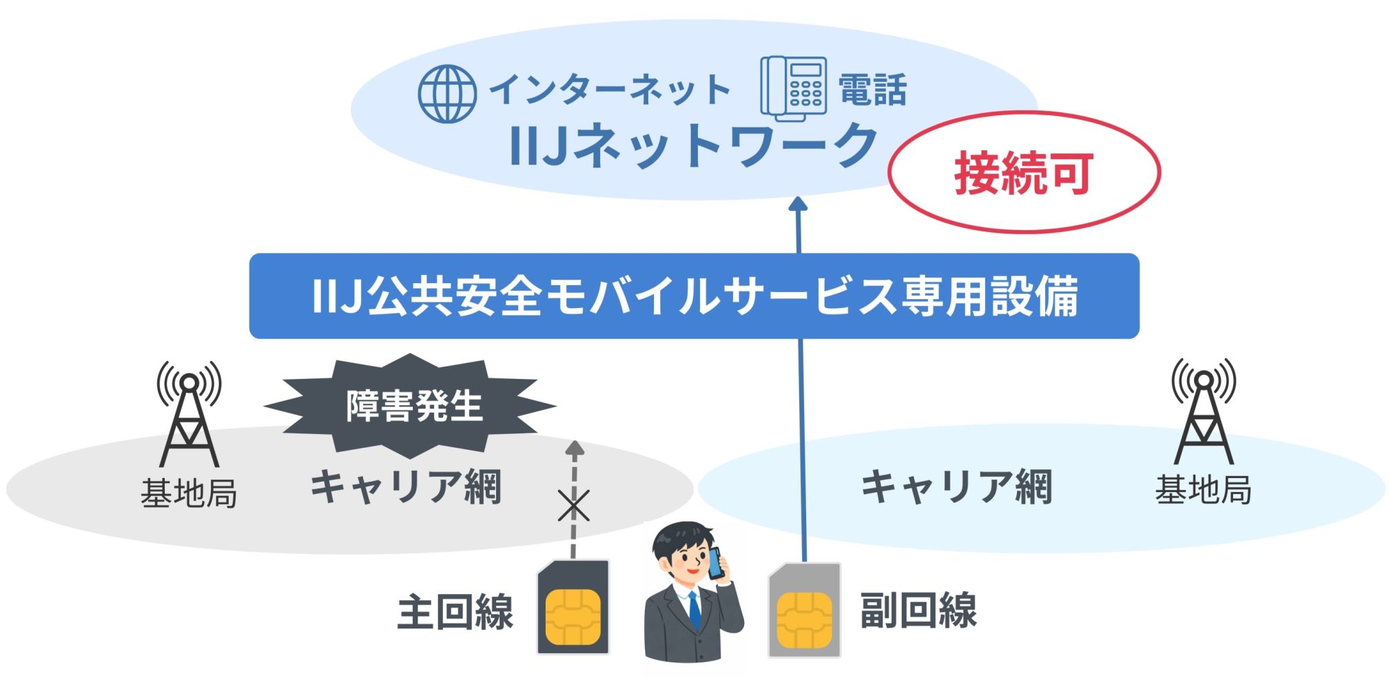 一般ユーザの通信混雑の影響を受けにくく、非常時でも安定した通信を維持できるよう設計されています。