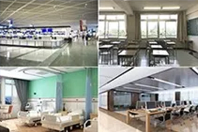 館内放送は、学校の校内放送設備やオフィスビル・工場・倉庫・病院・空港・駅などでの業務放送設備や火災報知器に連動した非常放送設備などをご案内しております。