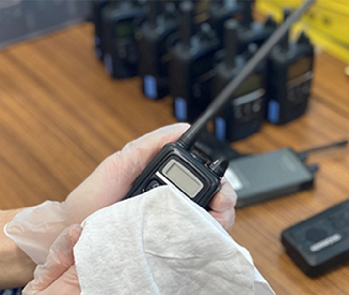 レンタル機材は、出荷前に点検・清掃・消毒を実施。